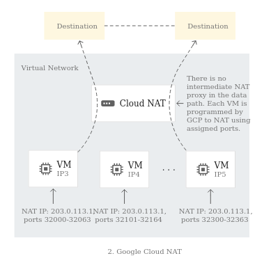 Consider the Cloud NAT as a gatekeeper who has specific instructions about which person gets to access the outside world (in our case a person is a metaphor for a Virtual Machine and the outside world is the internet!)