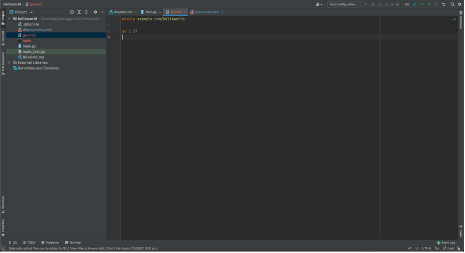 export KO_DOCKER_REPO=docker.io/{your-username}4. Ensure go mod is enabled on the Hello World project – if you are not aware of how to enable go modules in your existing project then head back to our tutorial