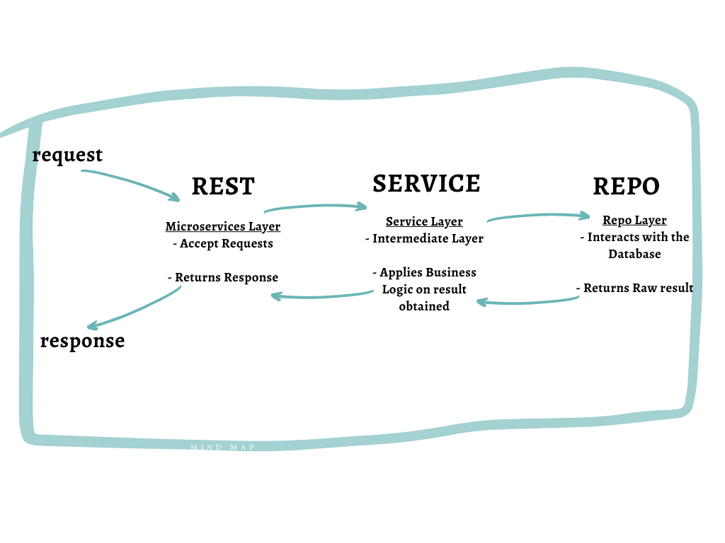 The Service Layer is like an intermediate layer that ties both the Rest layer and the Repo Layer. It accepts input from the Rest Layer and calls the Repo Layer. In turn, it accepts the results from the Repo Layer and sends it back to the Rest Layer. In both cases, the service layer is responsible to carry out any extra business logic or data manipulations that may be required.