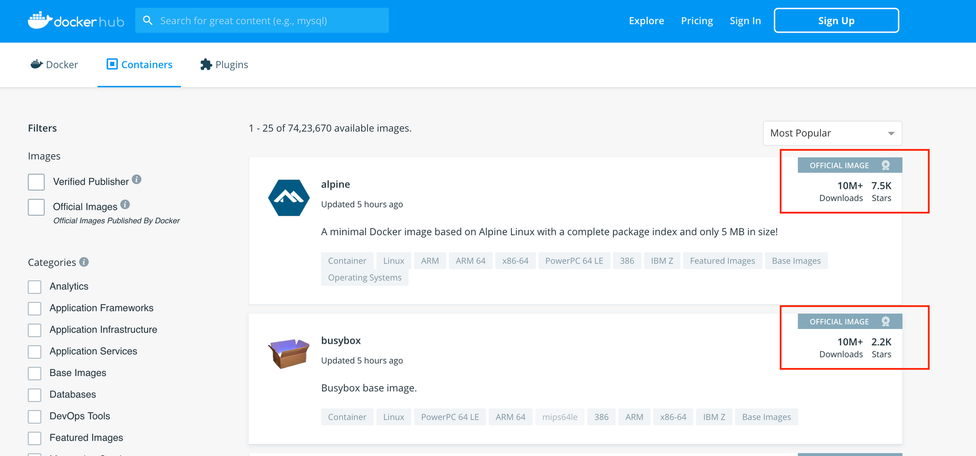 If you're exploring public images on registries like DockerHub, try using the official images . Watch out for stats like the large number of pulls and stars, regular updates. Or run a security scan on Docker Image (there a number of tools available for this).