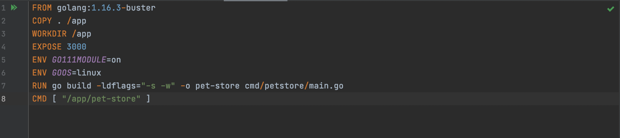 The "FROM" statement is always the first instruction. This is where you specify your base image. For us, its golang: 1.16.3-buster