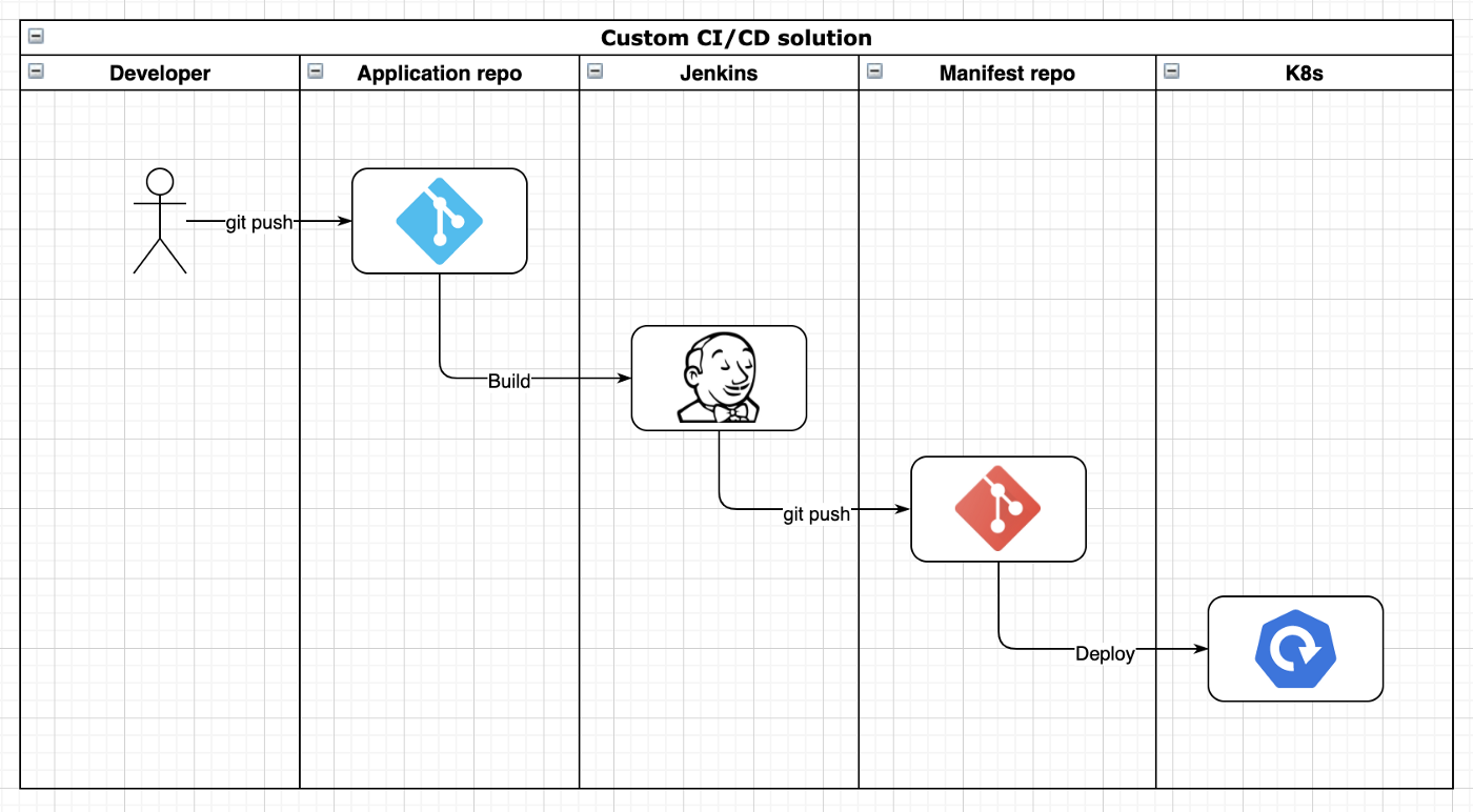 At the time we leveraged a now well-known K8s package manager, Helm, as our base for templatizing YAML manifests for our applications. Also, we relied on Jenkins as a CI tool to build and pack our apps into Docker images. Painstakingly, we wrote all the scripts necessary to achieve this custom CI/CD solution.