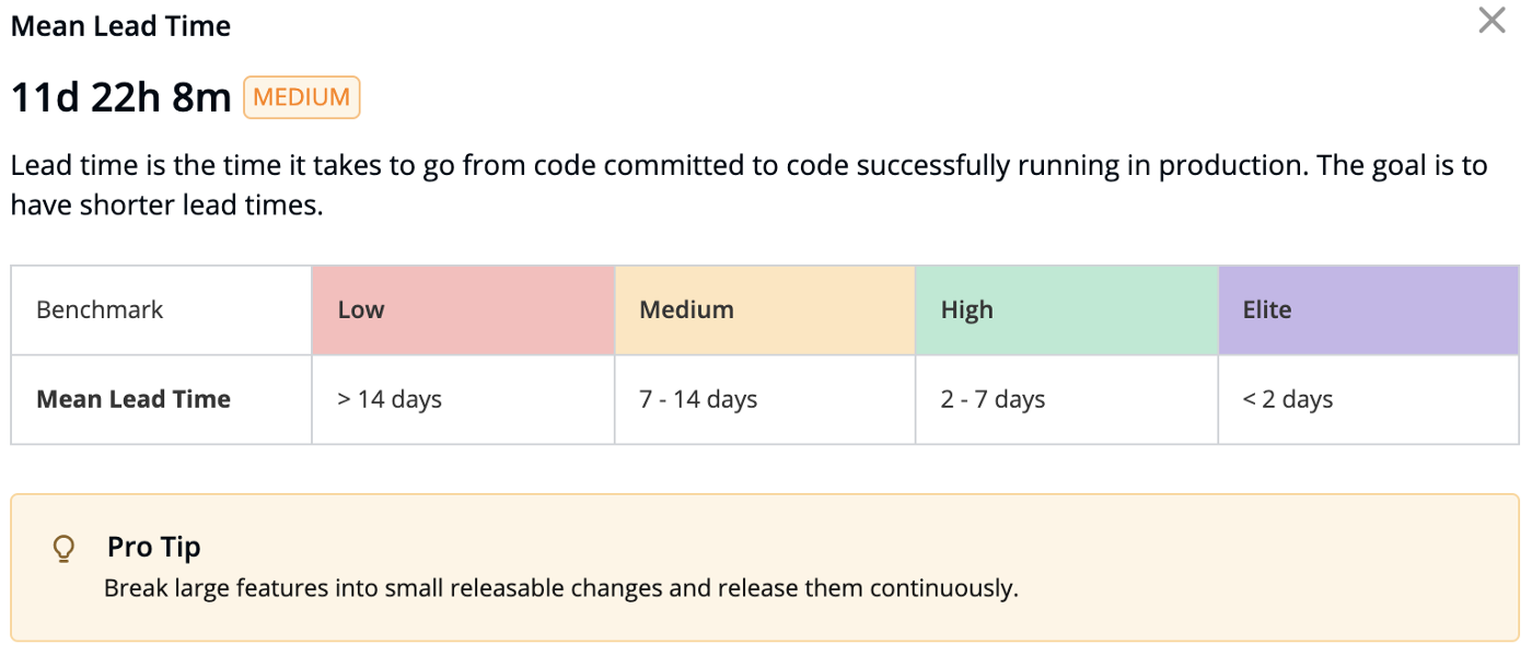 - Mean Lead Time: How long does it take to deliver a change to production?