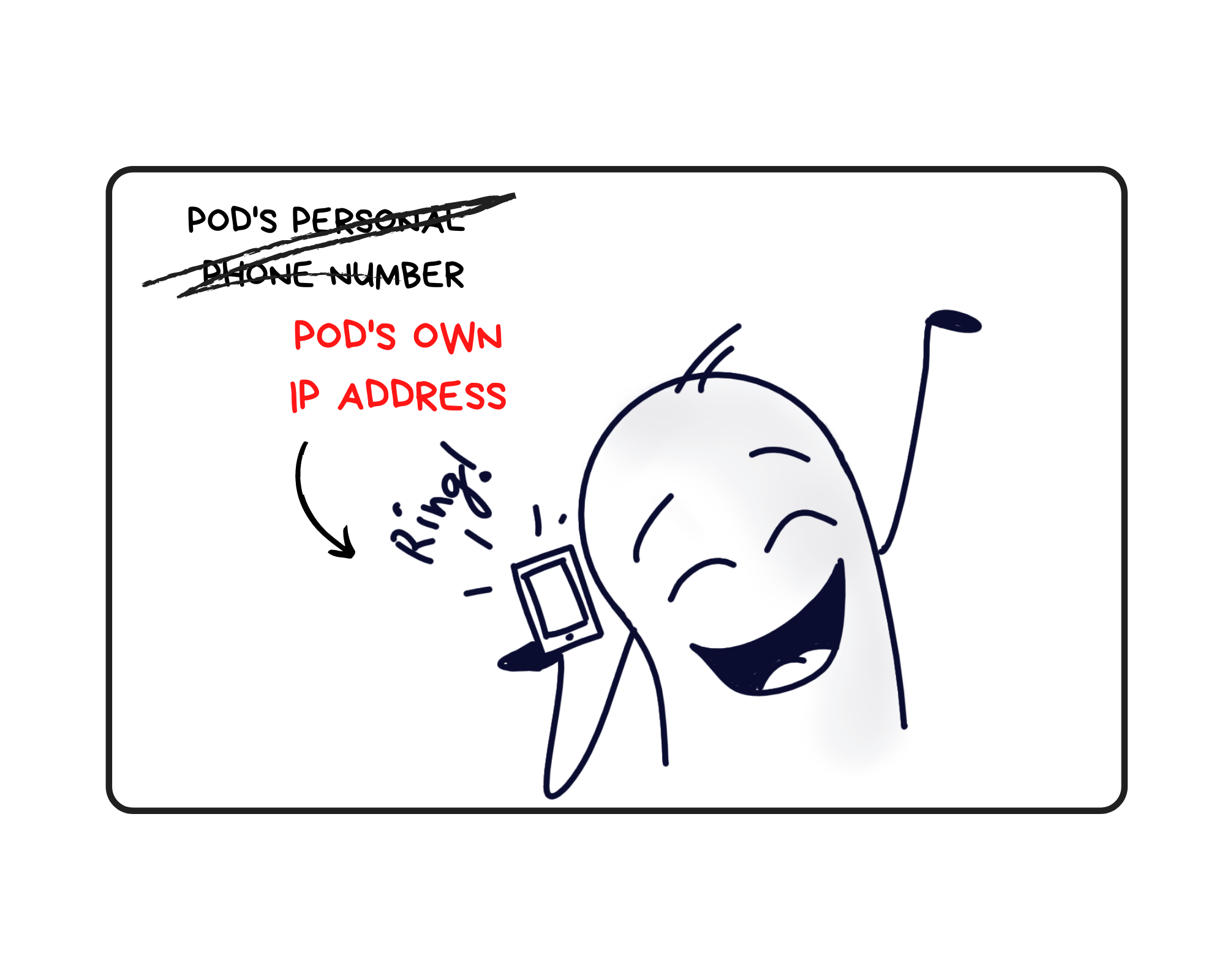 In the same was as each employee (including the Complaint Guy) had his own phone number, each pod is assigned its own IP Address which can be used by other pods to communicate with each other. See, if a pod is self-sufficient then it's bound to have some networking capability!