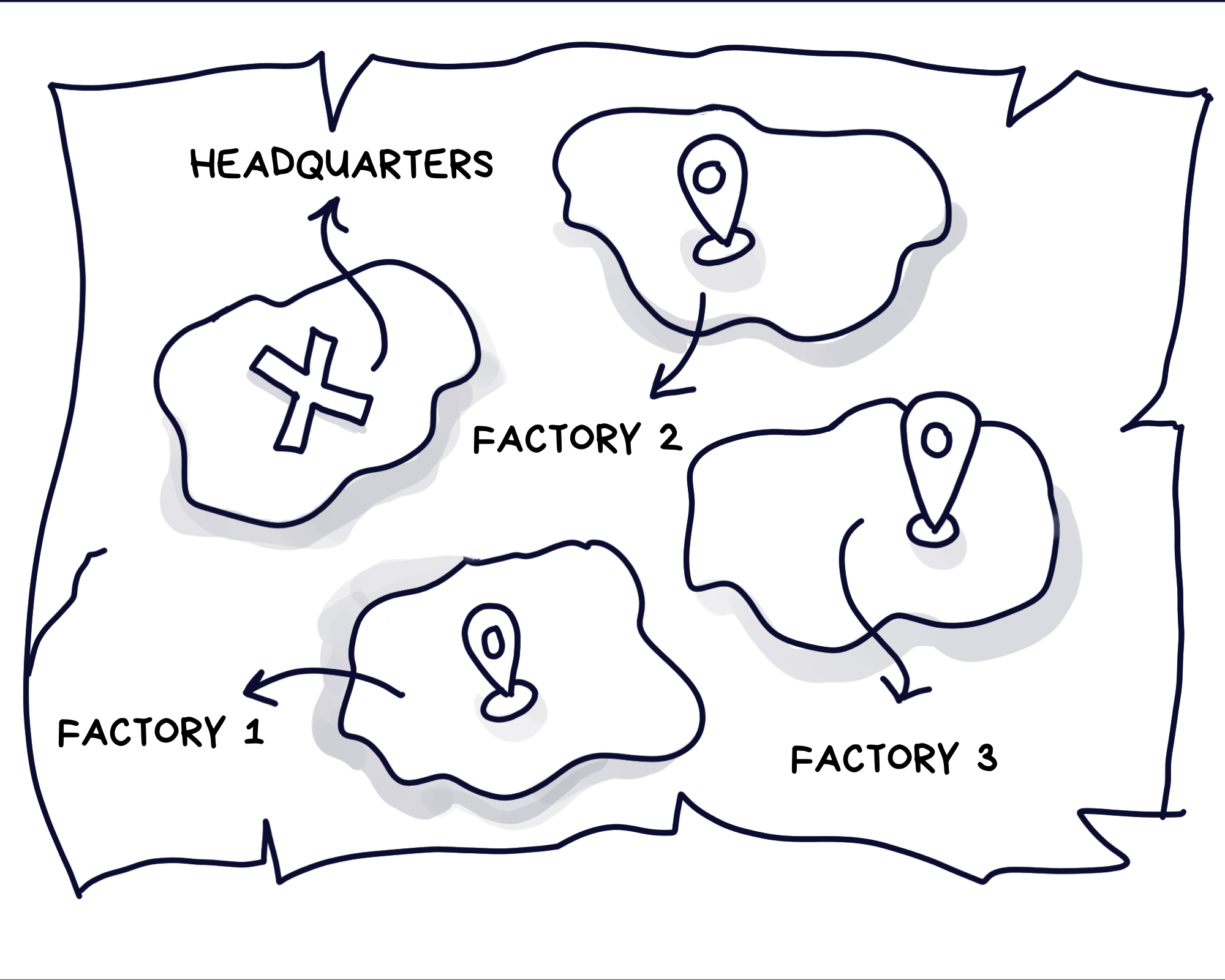 The Headquarters, was where major administrative decisions were taken and the other factories worked in accordance with these. All the new requests for chocolates first came in at the Headquarters which would be then propagated to the other factories. Employees were hired and assigned to factories by the headquarters.