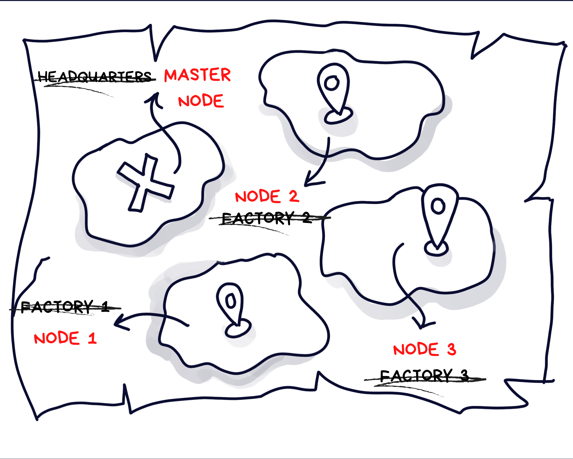 And that's how Charlie managed to manage his inherited chocolate company. The factories or "nodes" working in tandem with the headquarters "master node" with all the little "pods" running around busily, trying to get the work done.