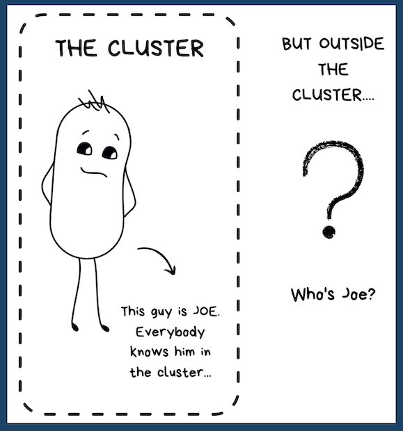 If you look at a cluster in another light, it's just a large bunch of pods running together. Just like a family. And if you'll probably relate here if you've ever had a name that only your close ones called you. In this case, this name is the pod's IP address. And the "close ones" are all the other pods.