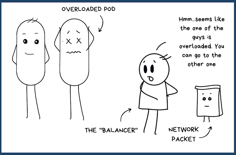 You got a cluster that's running multiple pods. The pods might want to communicate with each other. Or maybe an external source wants to connect with a pod. No wait, don't go that far. A pod is running containers within it. How are the containers talking to each other? And this is INSIDE the pod.