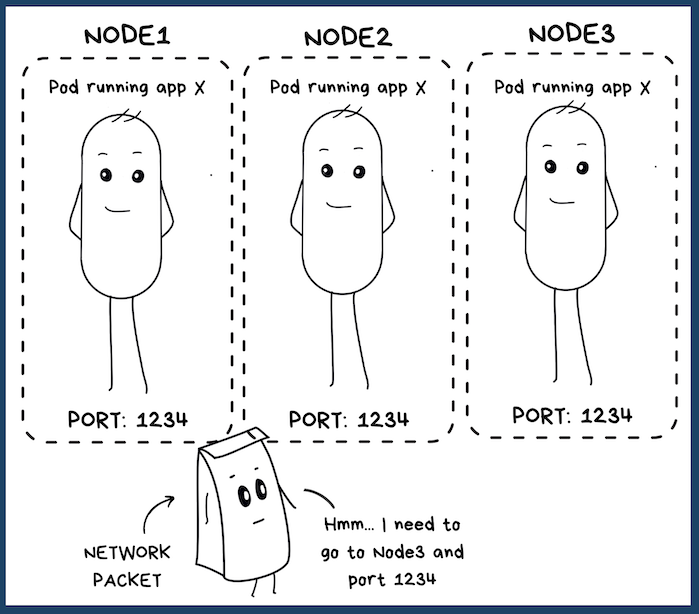 Or, maybe say, your microservice is running in replica pods on different nodes, you'll also need to choose which node to send your traffic to. (Because there's the Node's IP that you have to use). Are you going to monitor which pod is overloaded or under-loaded? Maybe it is a bit too much huh?