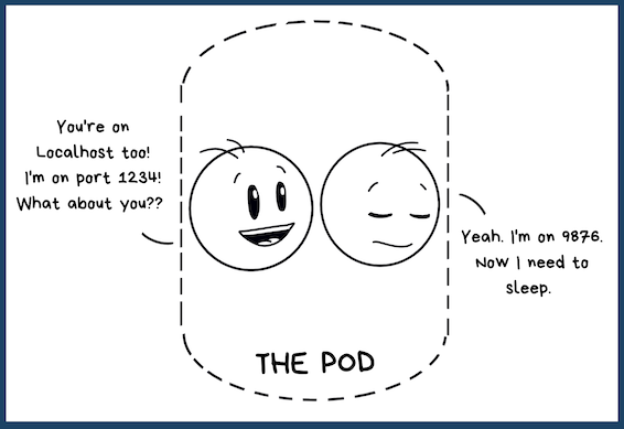 So the scope of the name "localhost" is only limited to the pod. And you can say that it's the pod's "private name" just like our cats!