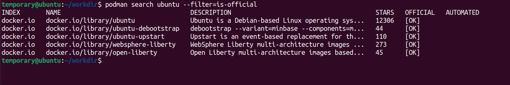 podman search --filter=is-official ubuntu