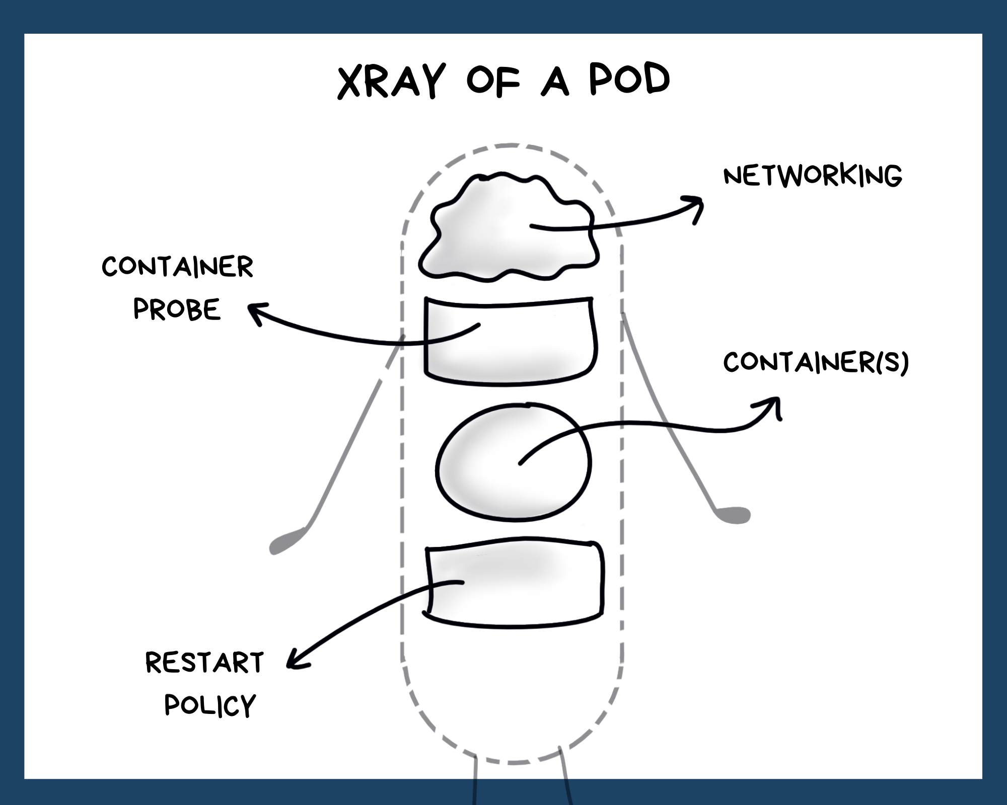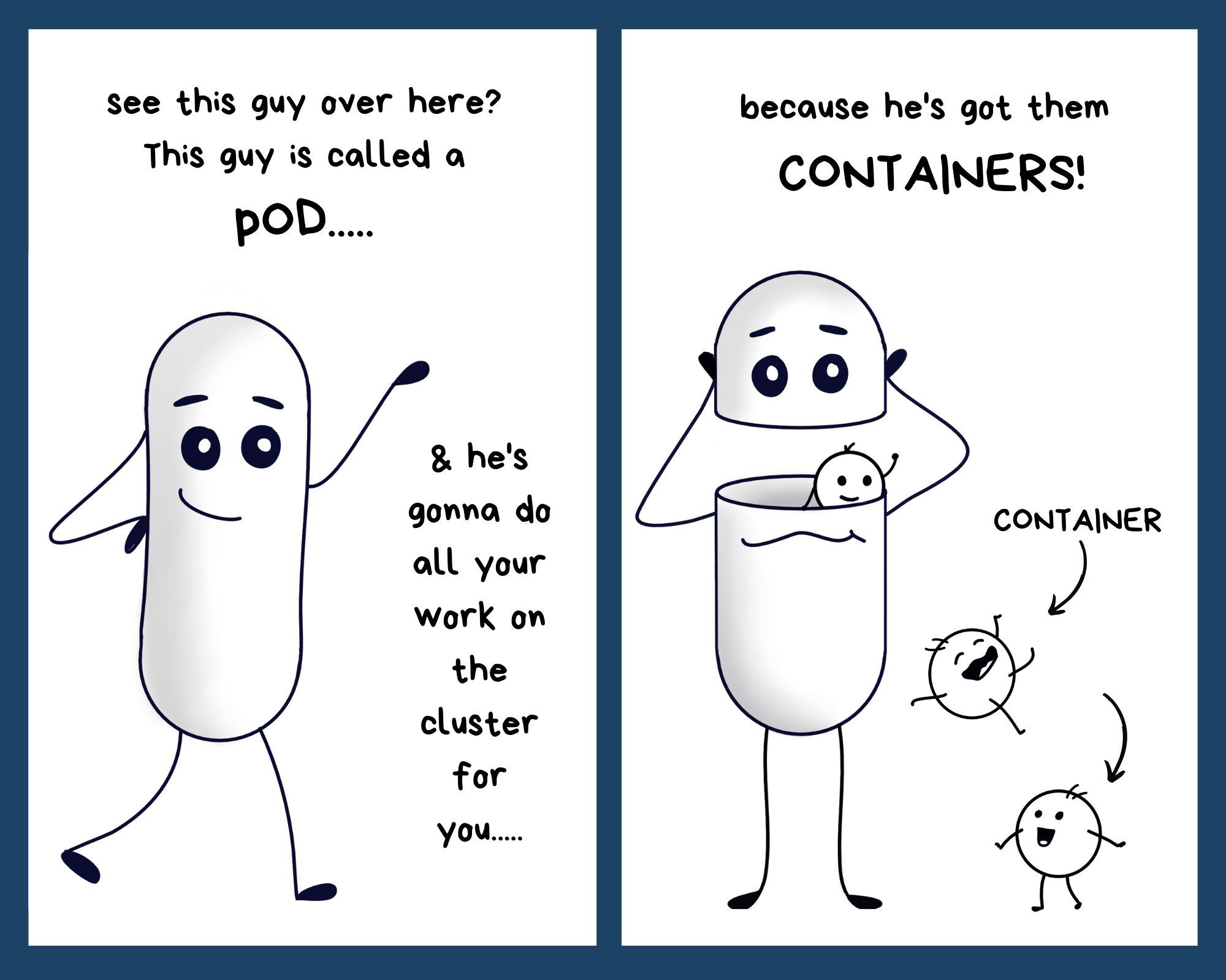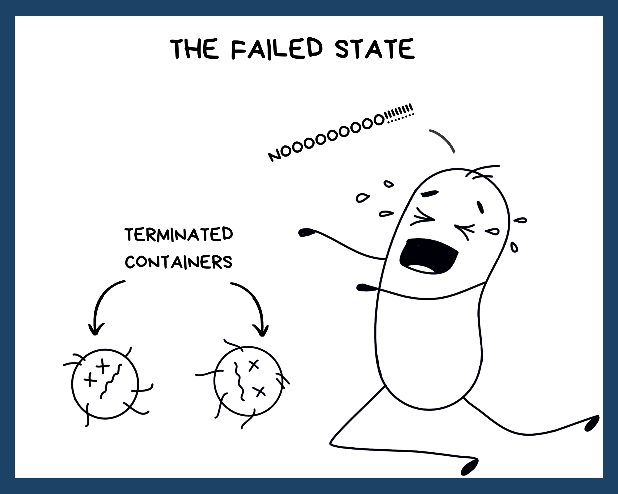 But there was one day when the pod failed. It was a sad day indeed. All the containers gave up on the pod and were terminated with failure.