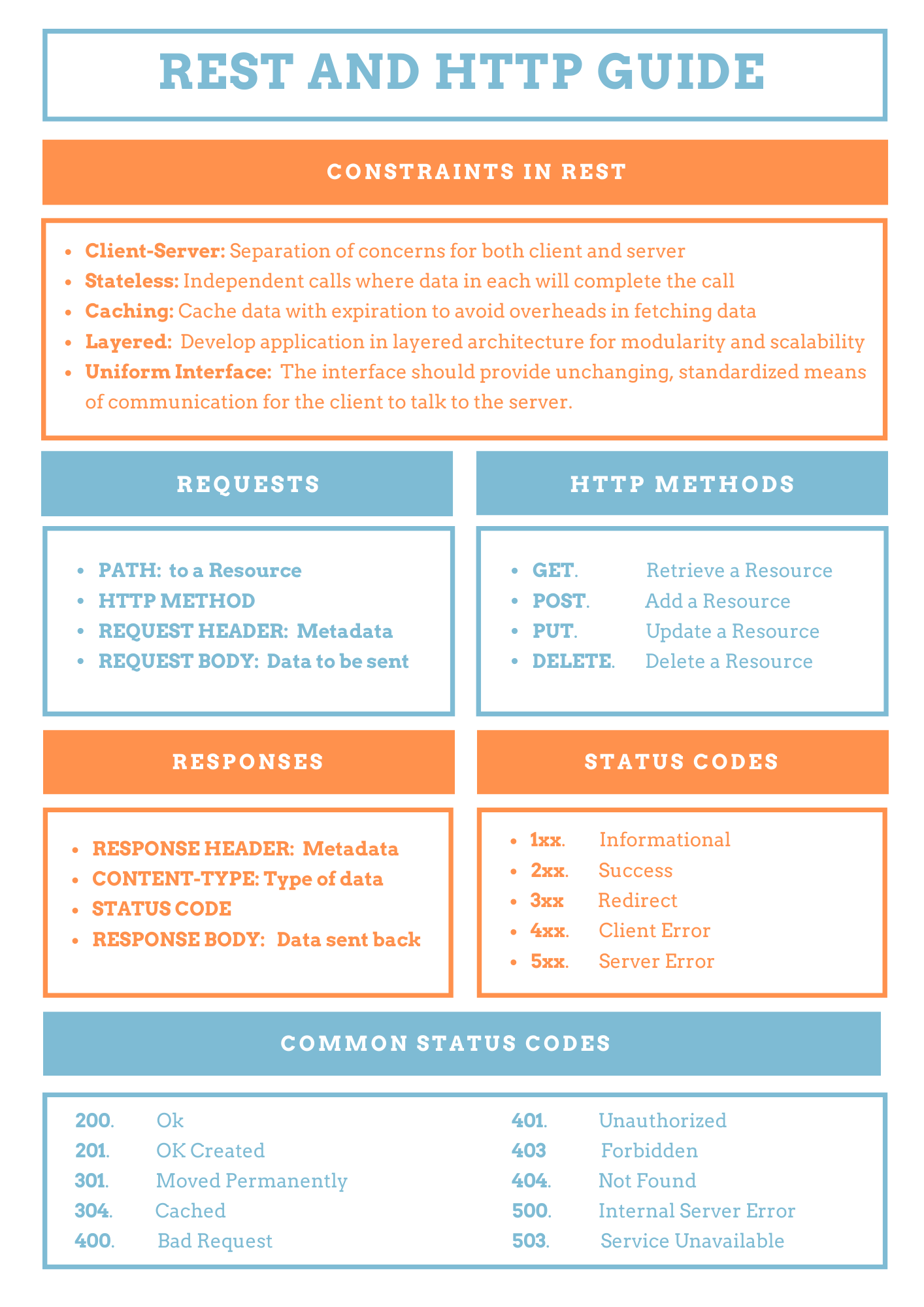 We’re not going to go through the entire concepts around REST and HTTP. In a nutshell, the concepts are summarised in the image below. If you’re keen on knowing more check out the references at the end!