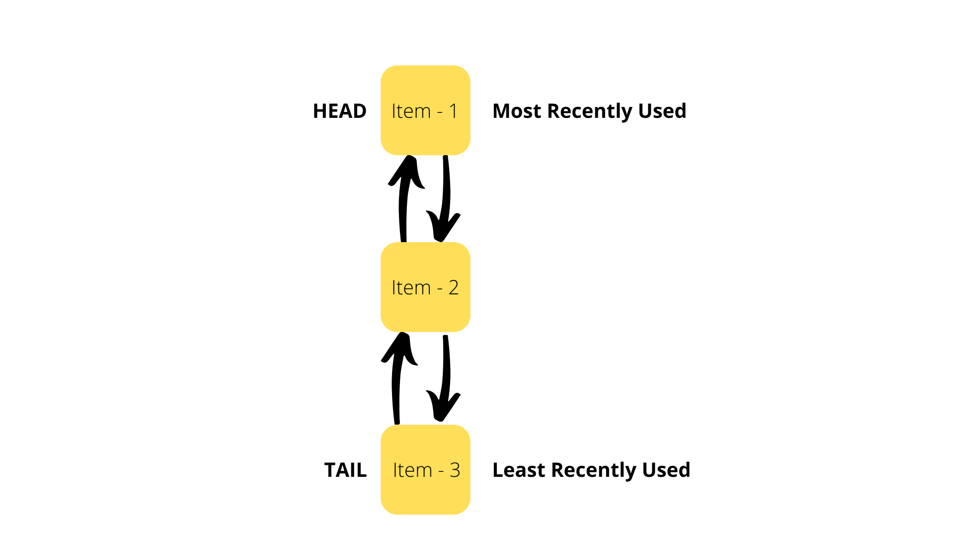 The Doubly Linked List is setup with its Head as the Most Recently Used item and its Tail as the Least-Recently Used item.