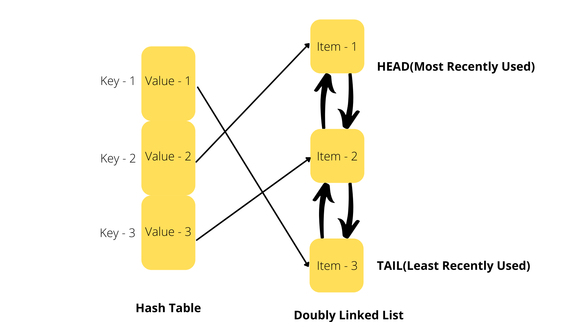 This allows the system to access the Least Recently Used element in O(1) time complexity by accessing the Tail of the Doubly Linked List.