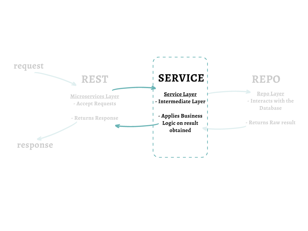 The service layer is where most of the business logic goes in. It acts as an aggregator of data by calling the required repo functions and adds additional logic which may be required to transform the data. In this post, we are going to implement the service layer