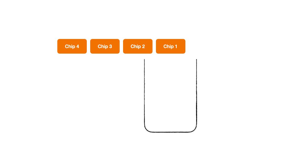 What goes inside first comes out last. This is also known as LIFO (Last In First Out) in computer science. The first chip that was added into the box is the last chip that we will eat.