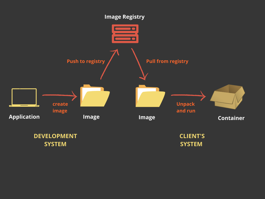 When you create an image, (remember its just a bunch of files), you can store it in a centralised file server so that its available for others to use. Or you can pull an image from the registry and start containers on your local system. This central file server is called the Registry.