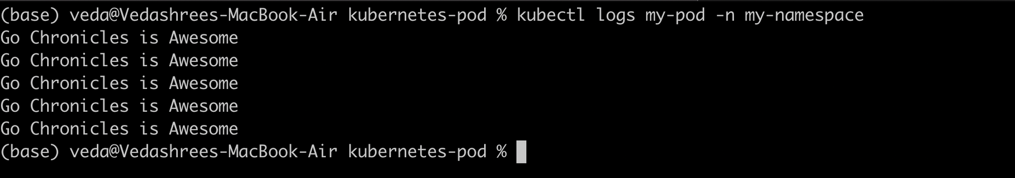 kubectl logs my-pod -n my-namespaceAnd we see our string being printed out: